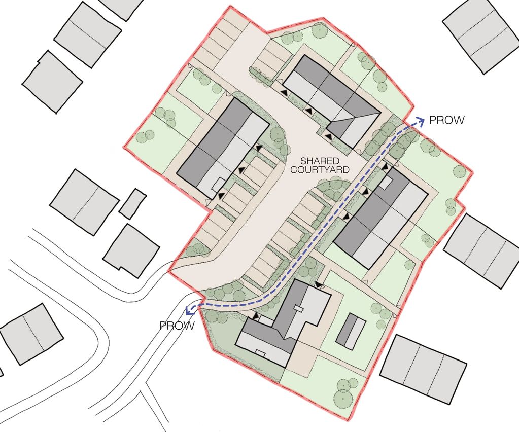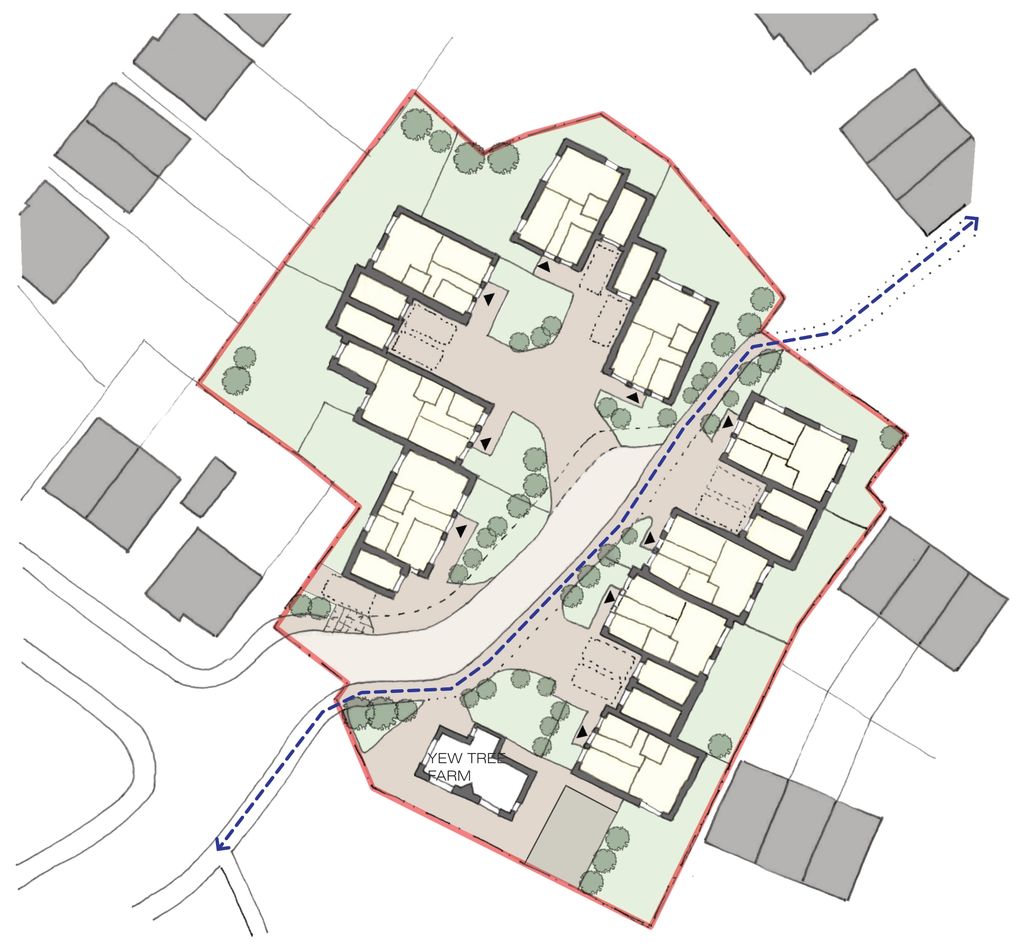 Masterplan for nine new accessible bungalows and one house within the existing farmhouse