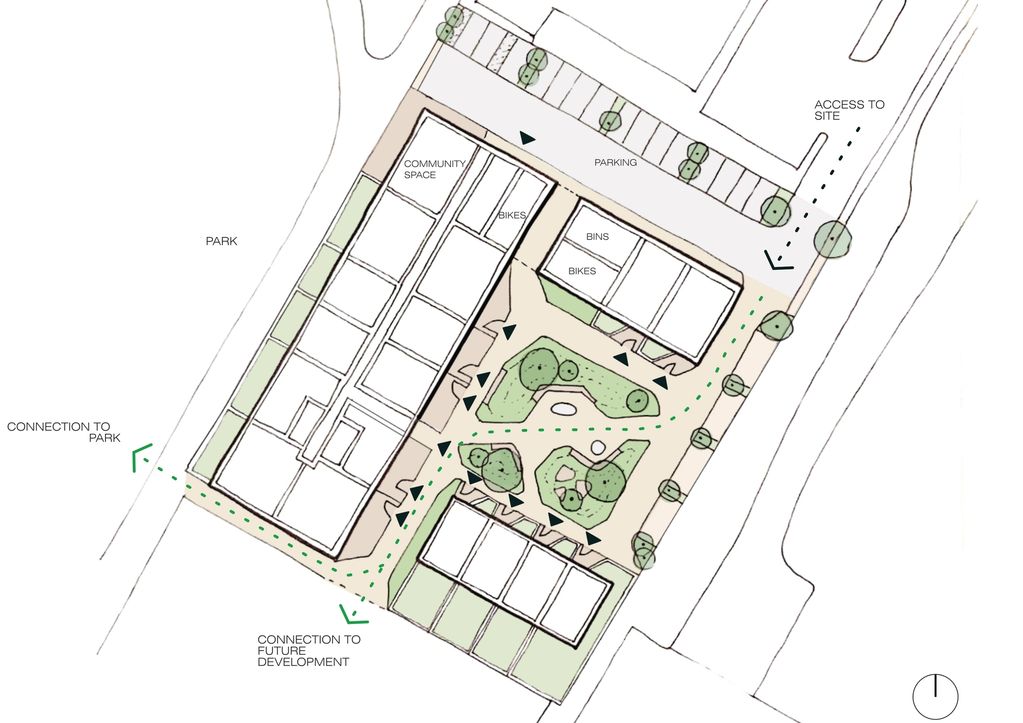 Masterplan for 60 new dwellings - 56 apartments and 4 houses. Presented to Salford City Council in a pre-app meeting the scheme was well received.