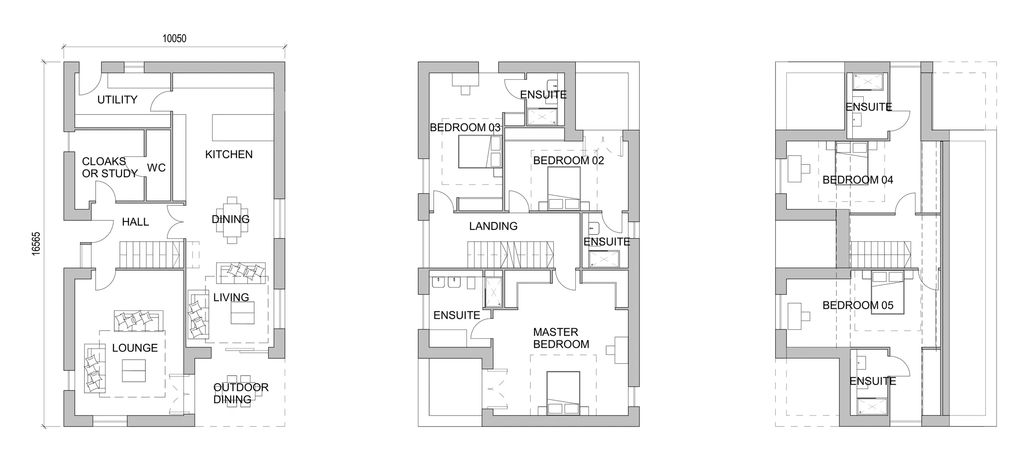 Large open plan living, dining and kitchen area, lounge and five double en-suite bedrooms arranged on two and a half storeys